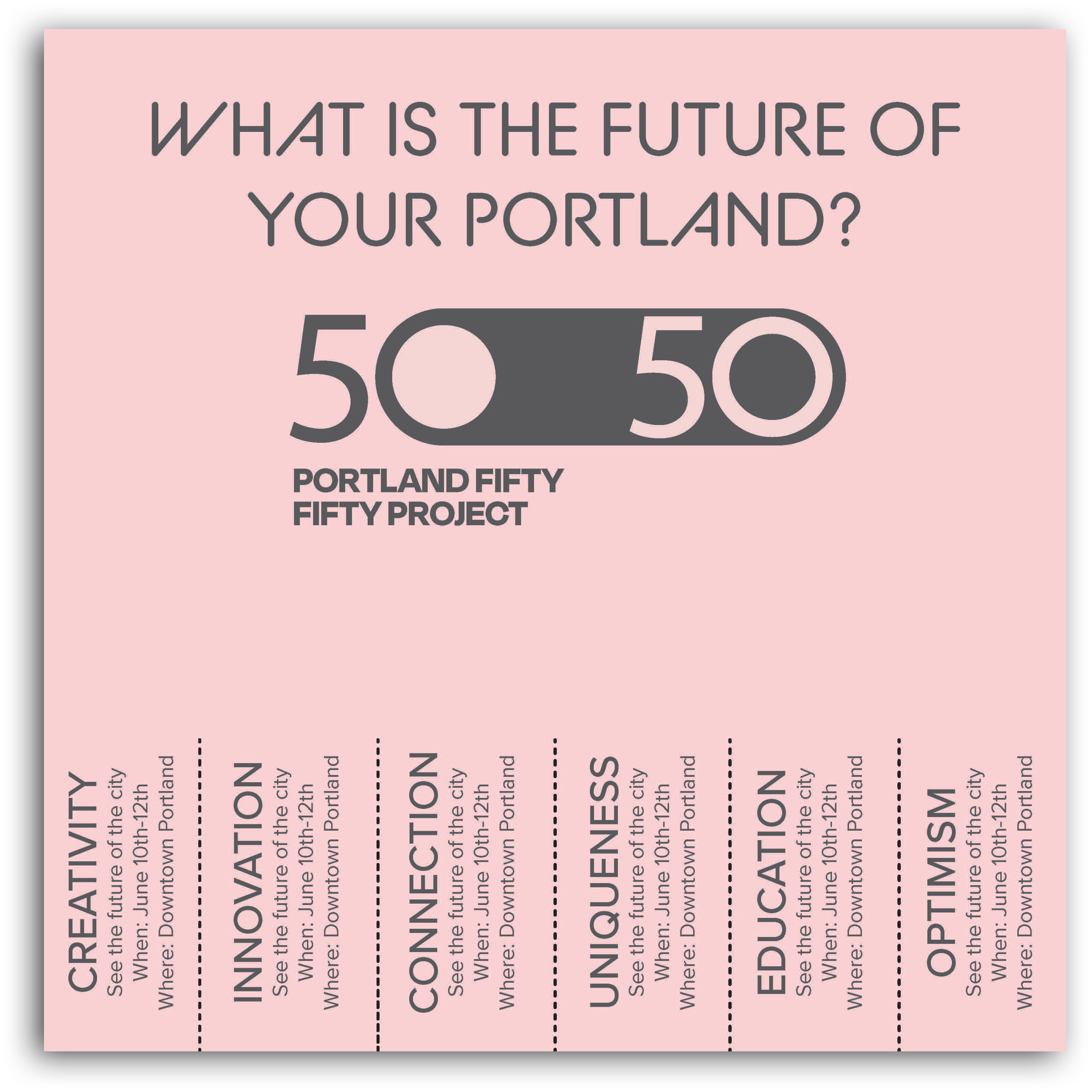 The Portland Fifty Project is focused on informing the community of Portland on the impact of the infamous Downtown Plan. Though many people are not familiar with it, we want to elevate the way we think about our city. Seeing where we come from, and more importantly where we are going, is essential for our futures. The branding project involved deliverables such as flyers and brochures, as well as wayfinding and other merchandise.